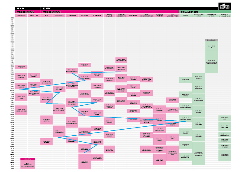 Just a possible schedule for ROX at Primavera Sound Day 1. Better to bring hiking boots???